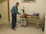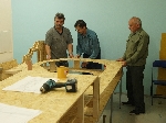 Takový malý ponk, kde se Jirka právě chystá přimontovat svěrák