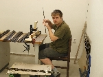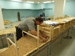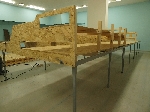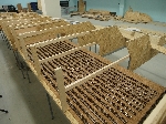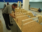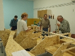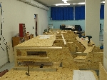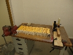 Na těchto můžete vidět dokončení výdřev na panelu číslo jedna až čtyři. Dá se říci, že jsme začali skoro od toho nejsložitějšího, neboť zde budou nad sebou tři nádraží. Dvě skryté a jedno viditelné – Nedvědice. Také se seznámíte s technikou kladení korku, který lepíme chemoprénem. Mimo jiné, ta plechovka s lepidlem stála skoro 2500kč… No a poslední fota již dokumentují našeho projektanta Víťu, jak nám donesl plánky zhlaví 1:1. Ty jsem si přibil na desku a podle čar pokládám výhybky. No neberte to když vám to nabízí!